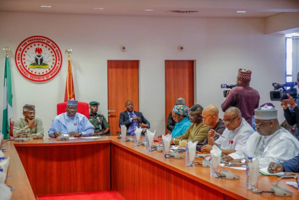 Principal officers from the Senate at the meeting include: Deputy Senate President, Ovie Omo-Agege; Deputy Leader, Ajayi Boroffice; Minority Leader, Enyinnaya Abaribe; Deputy Minority Leader, Emmanuel Bwacha; Deputy Chief Whip, Aliyu Sabi Abdullahi, and Chairman of Senate Committee on Finance, Senator Olamilekan Adeola.