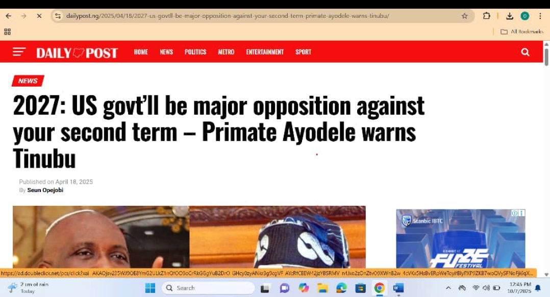 In April 2025, when Primate Elijah Ayodele told President Bola Ahmed Tinubu to be more concerned about international opposition, especially from the US, than Nigerian opposition parties, many didn’t know what he meant.