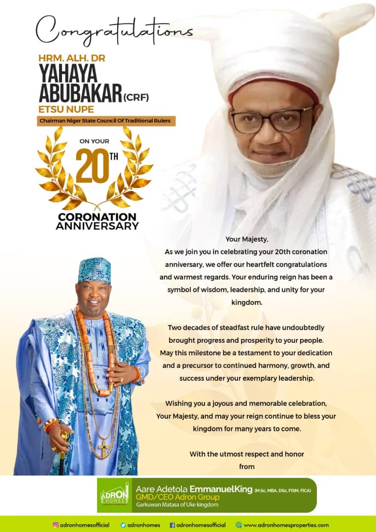AARE ADETOLA EMMANUELKING CELEBRATE ETSU NUPE AT 20TH CORONATION ANNIVERSARY IN BIDA, NIGER STATE