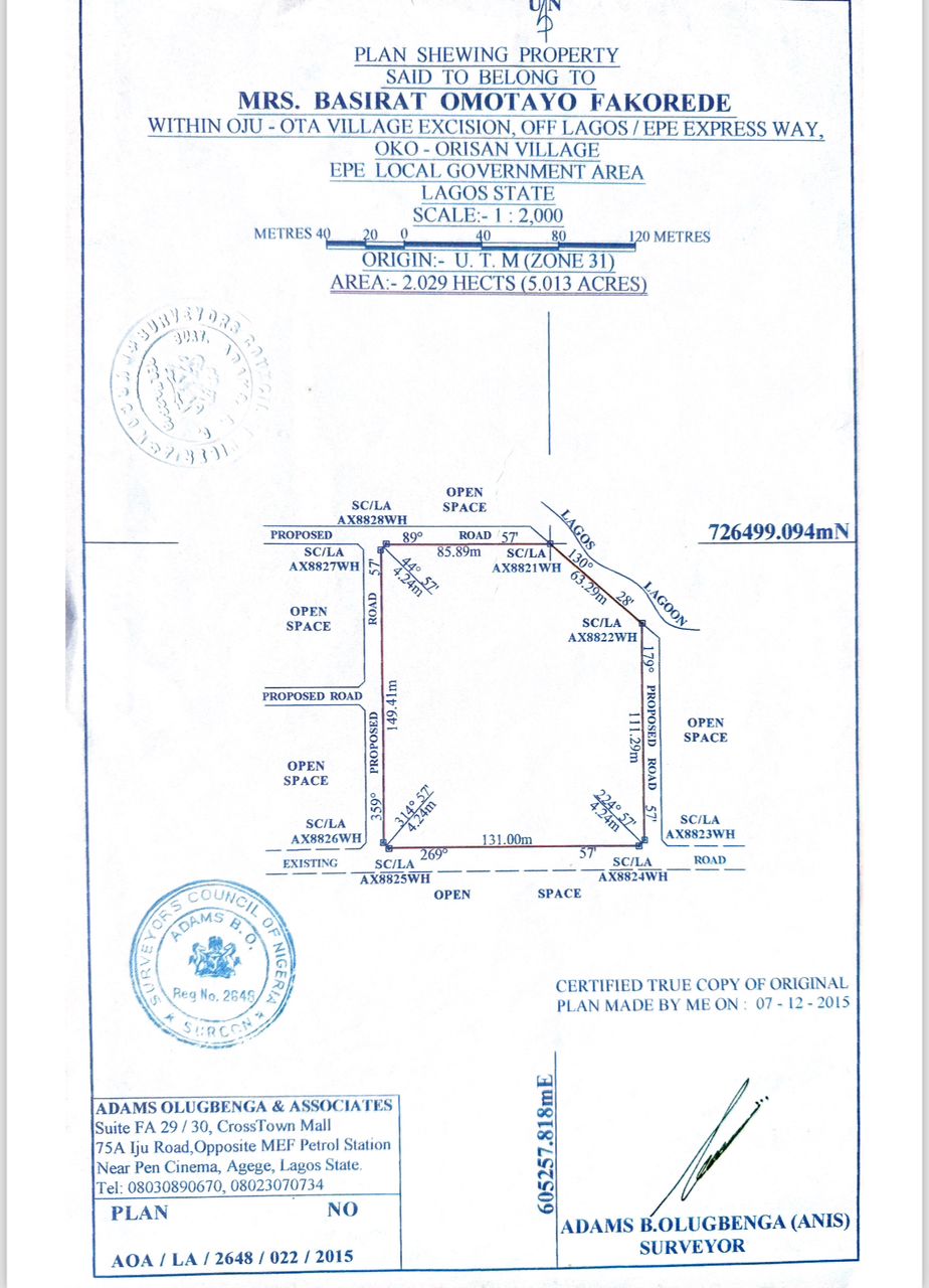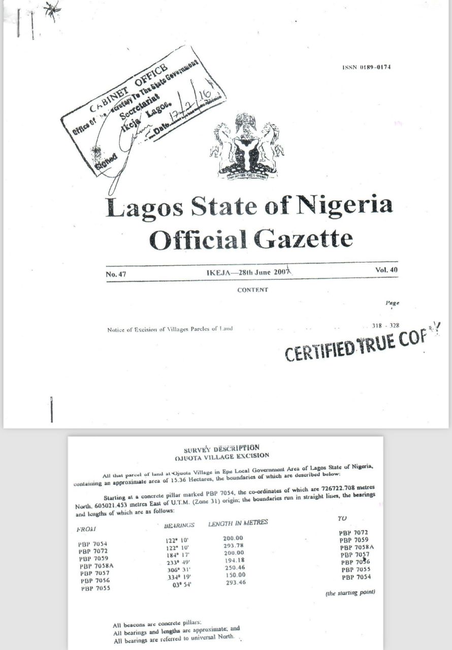 Recently, this unscrupulous elements have been in the news with their recent land-grabbing fiasco with the Oni-Orisan chieftaincy family of Lagos Island and Epe after they took thugs and police to beat family members who own the landed property situated at Oju-Ota, Oko-Orisan Epe Lagos, which Aare Bashir Fakorede acquired from the family in 2016, with a family-issued receipt, official gazette from the Lagos state on the 28th of June 2007, deed of assignment, Joint Venture agreement between his property development company and the family, survey plan among other documents to show he acquired the land.