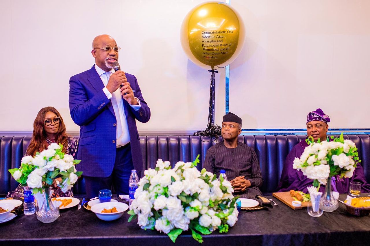Also speaking, the Vice President, Professor Yemi Osinbajo who was also at the venue of the reception, congratulated the awardees for the awards bestowed on them by President Buhari, charging them to always remain good ambassadors of Ogun State.