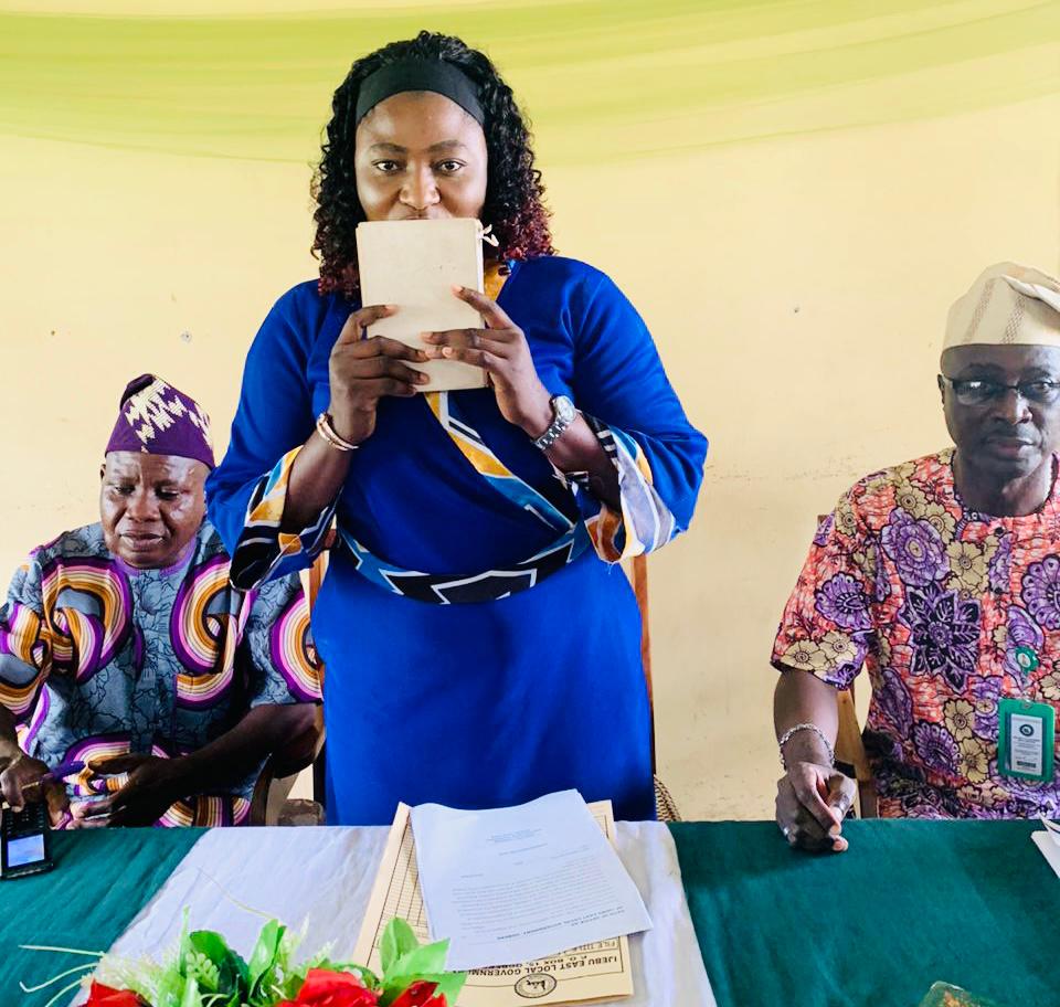 The new Chairman of Ijebu East Local Governmen, Hon. Adetutu Elizabeth Oyesanya, has been sworn-in following the recent impeachment of the former Chairman, Mr. Wale Adedayo over financial mismanagement and misappropriation by the Legislative House.