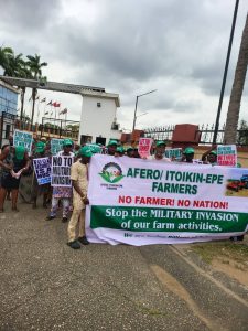 Afero Farmers protest displacement from Government allocated farmland in Lagos by Nigerian Military