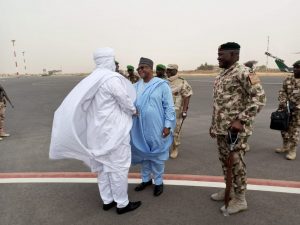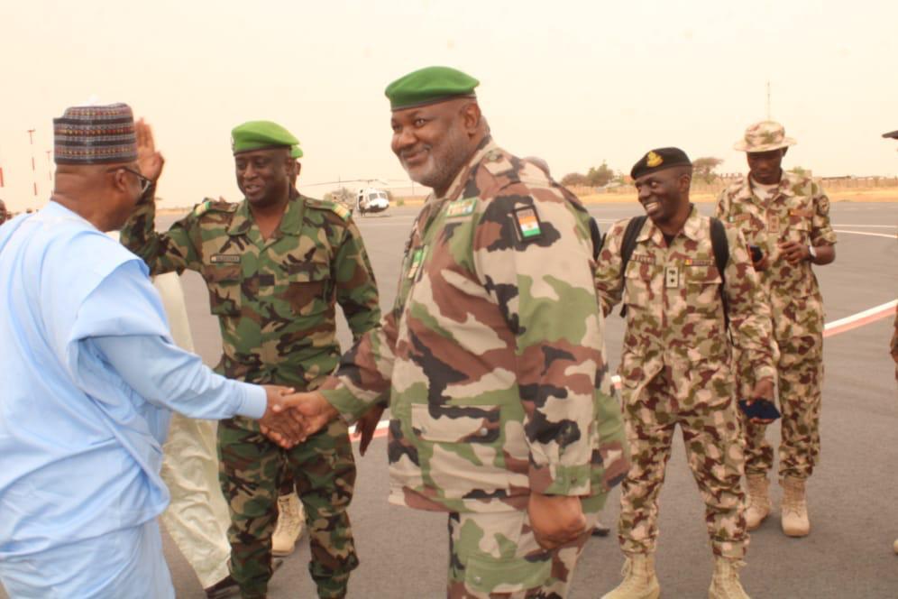 He was received on arrival at the Diffa Airport by the Governor of Diffa Region of Niger, His Exellency Issa Lamine, and the FC MNJTF, Major General Abdul Khalifah Ibrahim, DFC and other senior officers of the MNJTF.
