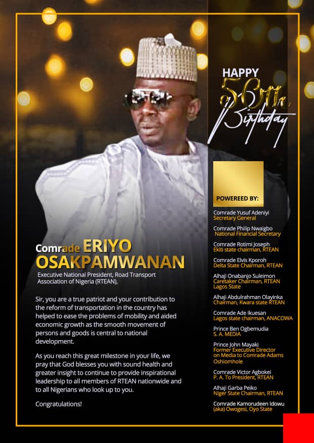 The national president of Road Transport Employers Association of Nigeria, Comrade Eriyo Osakpamwan is 50.