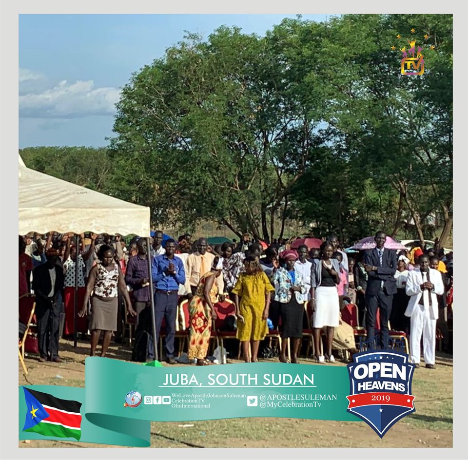 It was a time of joyous celebration for Southern Sudanese on Tuesday, April 30 and Wednesday, May 1, 2019, as Nigerian born famous cleric and senior pastor at Omega Fire Ministries (OFM) worldwide, Apostle (Prof.) Johnson Suleman, hosts the latest edition of the ministry’s ‘Open Heavens’ in Juba, the capital city of the Republic of South Sudan.