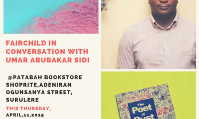 Umar Abubakar Sidi, author of the Poet of Dust will be hosted by Fairchild at Patabah Bookstore, Shoprite, Adeniran Ogunsanya Street, Surulere, Lagos, this Thursday, 11th...