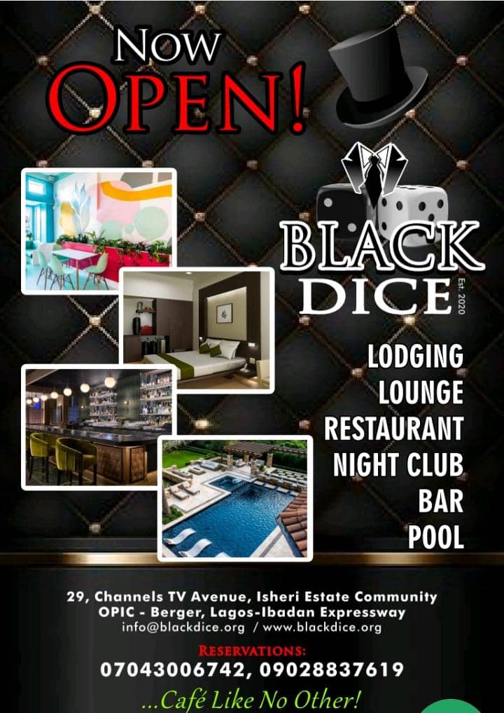 Black Dice Café is a new entrant into hospitality haven and it is positioned to take fun and entertainment experience to the next level, where the A-lists, celebrities, entertainers, crème-dela-crème and who-is who in the society and tourists from abroad can visit to unwind and relax with maximum security.