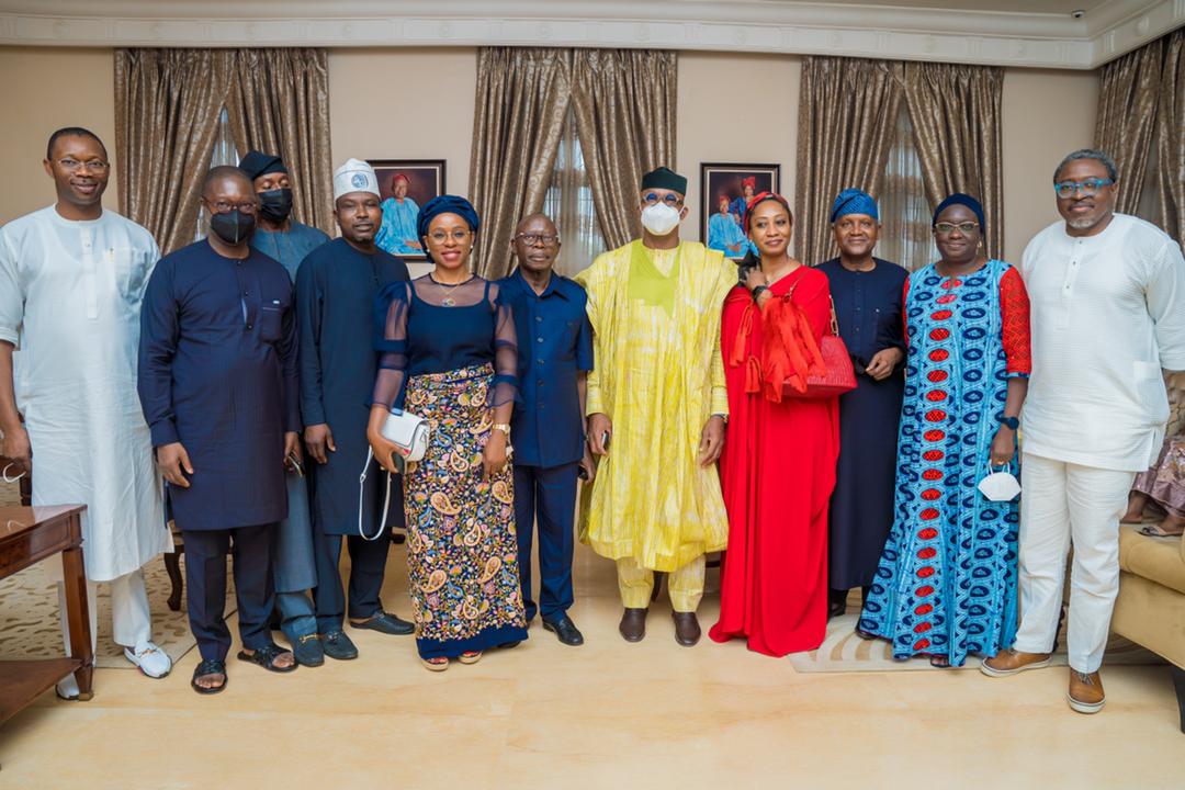 The President, Dangote Group, Aliko Dangote, the Ooni of Ife, Oba Adeyeye Enitan Ogunwusi, former National Chairman of the All Progressives Congress, Adams Oshiomhole and other dignitaries, on Sunday, visited the Iperu-Remo country home of the Ogun State governor, Dapo Abiodun, to commiserate with him over the death of his father, Pa Emmanuel Abiodun.