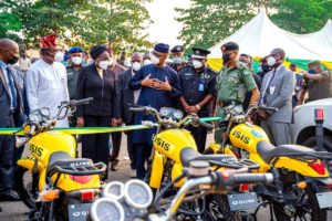 58. Handling COVID-19 Lockdown Security Unrest: The April donation of additional operational vehicles and motorbikes to numerous security agencies was a fulfilment of Governor Dapo Abiodun’s promise to provide material and logistic support to further strengthen the security architecture of the State. The Governor had made this promise in a 12th April statement which was released after the Ogun State Police Command made arrests of 150 suspects in connection with the security unrest that erupted within the Agbado Ijaiye, Sango, Ijoko and Ifo axis, when the State began enforcing the FG-directed COVID-19 lockdown. The Governor emphasised that in his usual manner of not condoning crime from any quarters, he immediately directed the Command and other relevant agencies to promptly move with full force against the criminals.