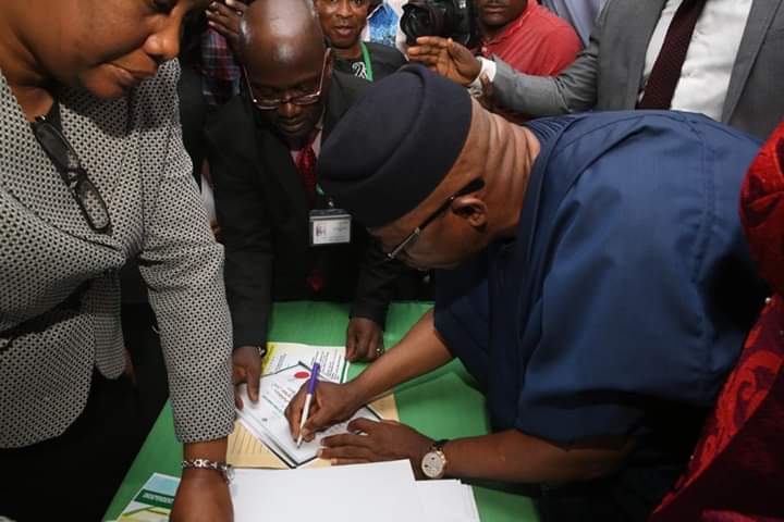 Governor elect of Ogun state, Prince Dapo Abiodun is in high spirit as he just picked his Certificate of Return today at INEC office in Abeokuta, Ogun State.