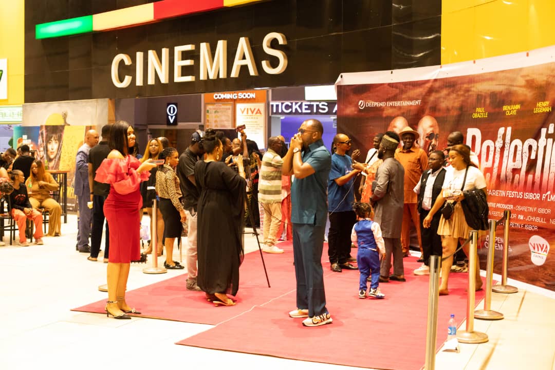 On Saturday February 24th, history was made as Deep end entertainment premiered “Reflections” at the Viva Cinemas in Ikeja. The premiere was attended by Legendary superstar actor Paul Obazele along side other Prominent Nollywood actors like Big Tony of the Prodigal brother Fame, the director Mr. Osaretin Festus Isibor, Kelly Ogbeide who played the female lead role in this blockbuster film. Comic act Pikolo, APC ex Officio south west Hon. Bunmi Oriniowo also graced the event.