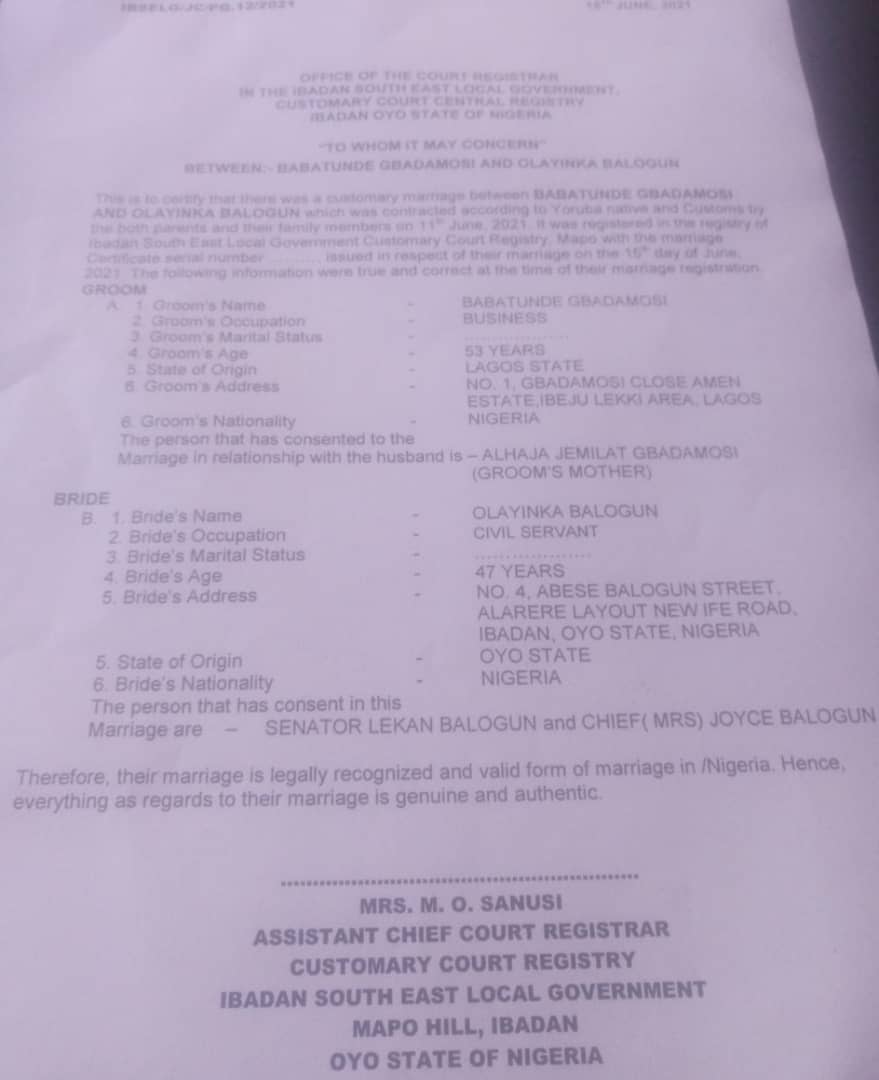 While Gbadamosi has been putting out statements warning clients not to do business with Redbricks Homes, his ex wife, Sade released a statement proving that the politician willingly resigned in the presence of his lawyer and a witness, with proof of his resignation letter.