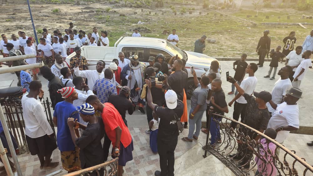 On arrival at Obuama, a large crowd of men and women gathered at the entrance into the town to welcome him with drums and singing accompanying his convoy all the way.