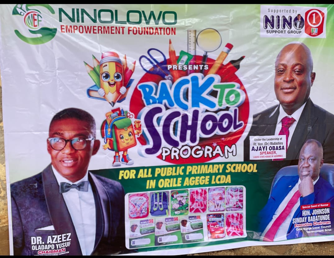 On Wednesday, September 18, 2024, the NINO Empowerment Foundation, led by philanthropist and businessman Hon. (Dr.) Azeez Oladapo Yusuf, organized a highly impactful Back-to-School programme for primary schools in Orile Agege. The event, held at Oyewole Primary School, saw the distribution of essential school supplies, including books and school bags, to students for the new 2023/2024 academic session.