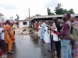 Receiving the protesters on behalf of the palace of the Oba of Benin, Chief Oghafua, the Oyoba of Benin, and Chief Uyi Okungbowa, the Ogua of Benin told the protesters to remain calm as the palace we as a matter of urgency look into it as quick as possible.
