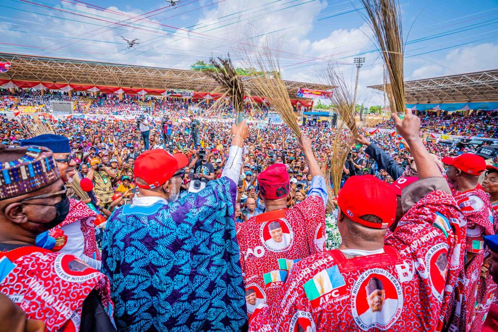 The rally which was witnessed by a mammoth crowd was attended by all APC Governors: Atiku Bagudu (Kebbi), Babagana Zulum (Borno), Nasir El-Rufai (Kaduna), Abdullahi Sule (Nasarawa), Inuwa Yahaya (Gombe), Simon Lalong (Plateau), Abdulrahman Abdulrazaq (Kwara), Abdullahi Ganduje (Kano), Abubakar Badaru (Jigawa), Rotimi Akeredolu (Ondo), Gboyega Oyetola (Osun), Dapo Abiodun (Ogun) and Babajide Sanwo-Olu (Lagos) who were all introduced by the host Governor, Dr. Kayode Fayemi.