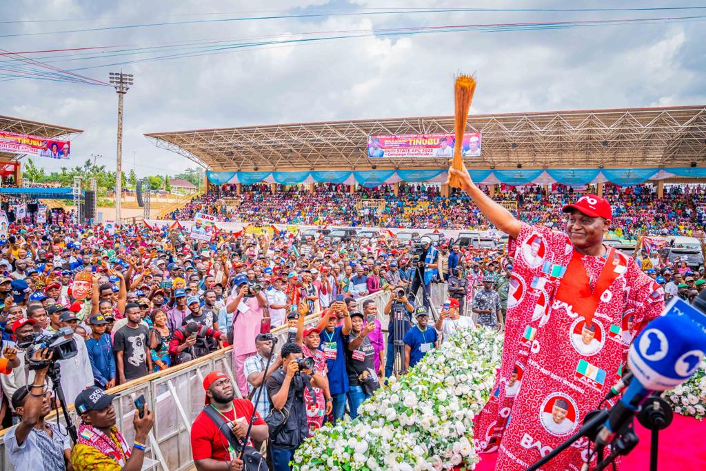 Speaking earlier, the National Chairman, Senator Adamu said the Ekiti rally was the first outing of the party since the conclusion of the national convention which produced Asiwaju Tinubu as the presidential flag bearer.