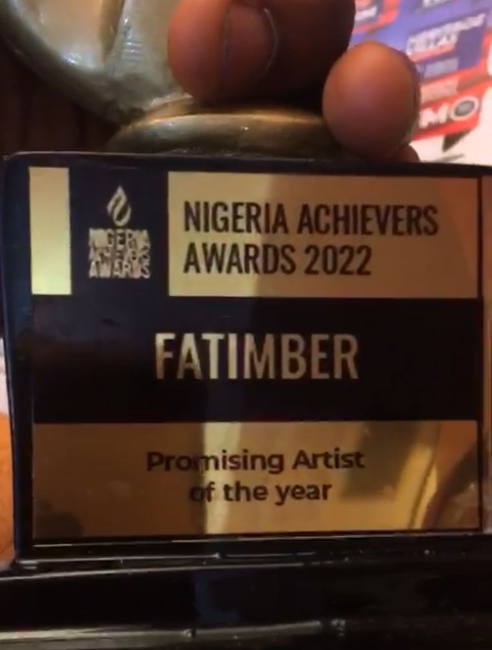 The rising star Fatimber has made a bold statement in the Nigerian entertainment scene by winning two prestigious awards. At the Nigeria Achievers Award, Fatimber was honored with the title of “Promising Artist of the Year,” a testament to his undeniable talent and growing influence in the industry. This accolade reflects his hard work, creativity, and dedication, solidifying his place as a force to watch.