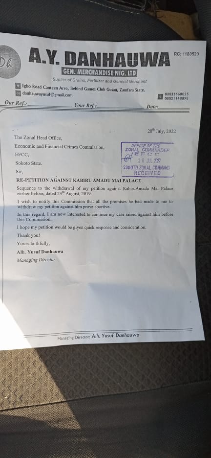 As at the time of filling this report , a source at the EFCC who doesn’t want his name known hinted that, “we have so far received about 12 similar petitions against Hon. Kabiru Amadu MAIPALACE and will soon be charge to Court”, the source said.