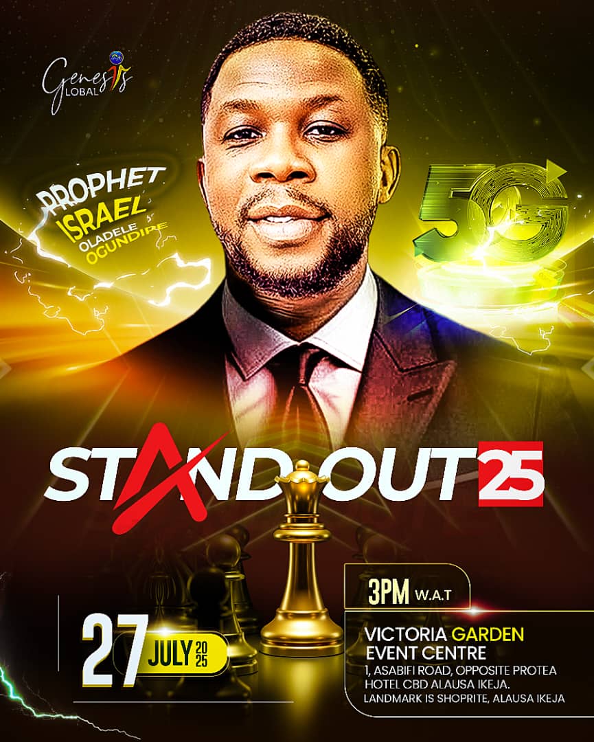 Prophet Israel Ogundipe, the founder and Presiding Overseer of Genesis Global Parish of the Celestial Church of Christ, CCC, is set to host a powerful spiritual gathering tagged ‘StandOut 2025’ on Sunday, July 27, 2025, at the Victoria Garden Event Center, Alausa, Lagos.