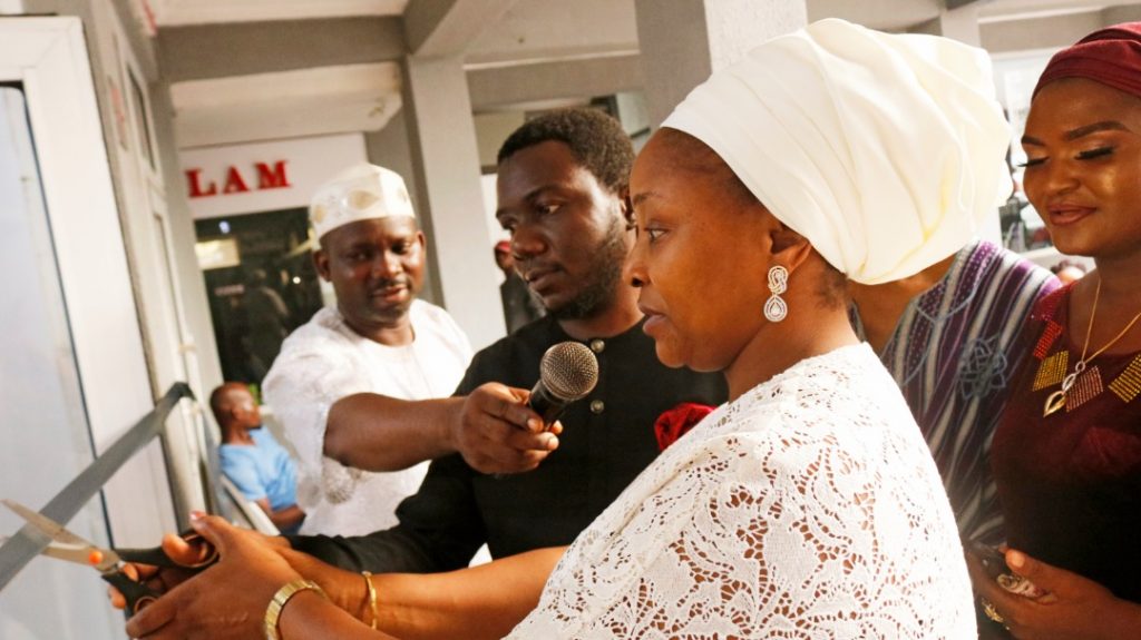 Nasir Illias, representing the Fashion Designers Association of Nigeria (FADAN), assisted by Mrs. Ronke Edun, a leading fashion designer and MD/CEO of Bolenny Couture in Otta, Ogun State cut the ribbon to open the black- and gold-themed shop, the interior and lighting of which was designed and executed by Mr. Suleiman (who is an engineer) and admired by the guests, clients, associates, and family and friends present.