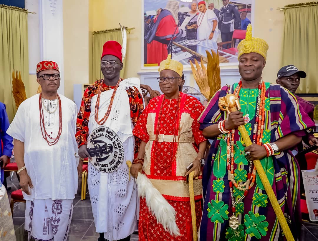 It was glitz and glamour as his Excellency, (Lt.Gen.Rtd) Ambassador Tukur Yusufu Buratai CFR, was conferred with a top traditional title, Ochiagha Dike Eji Ogu- Aguleri by His Royal Majesty, Dr. Mike Idigo V. Igwe of Aguleri Kingdom during the 124th Annual Ovala Aguleri fiesta on Saturday, January 6th, 2024.