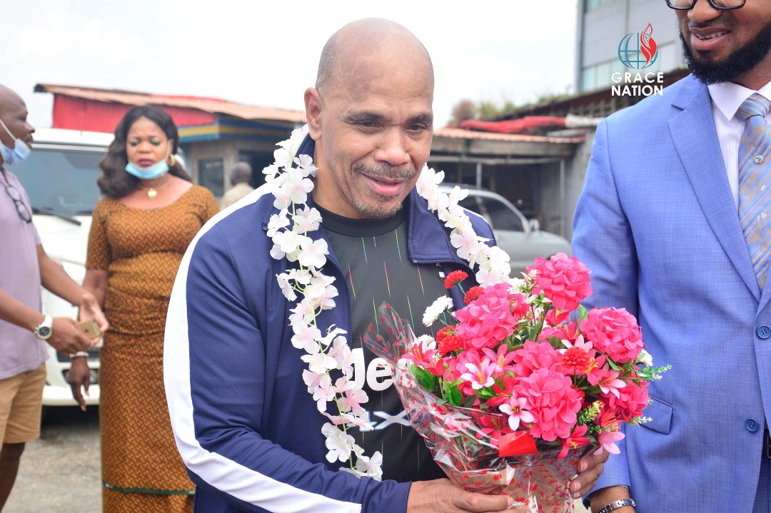 The American Prophetic Man of God, Bloomer was received by the chief Host of the conference and Senior Pastor Grace Nation International Dr Chris Okafor amid fun fare