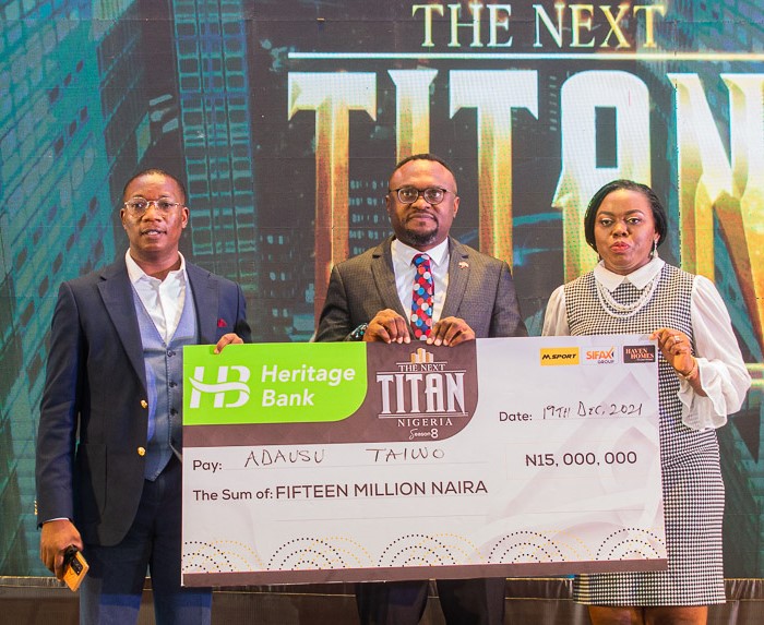 As part of its continued supports to Micro, Small and Medium Enterprises (MSMEs), Heritage Bank Plc, Nigeria’s most innovative Banking Service provider has again empowered an entrepreneur winner of The Next Titan Season-8 with sum of N15million.