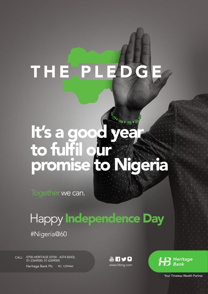 Heritage bank Plc, Nigeria’s Most Innovative Banking Service provider joins the nation to celebrate Nigeria’s 60th independence anniversary.