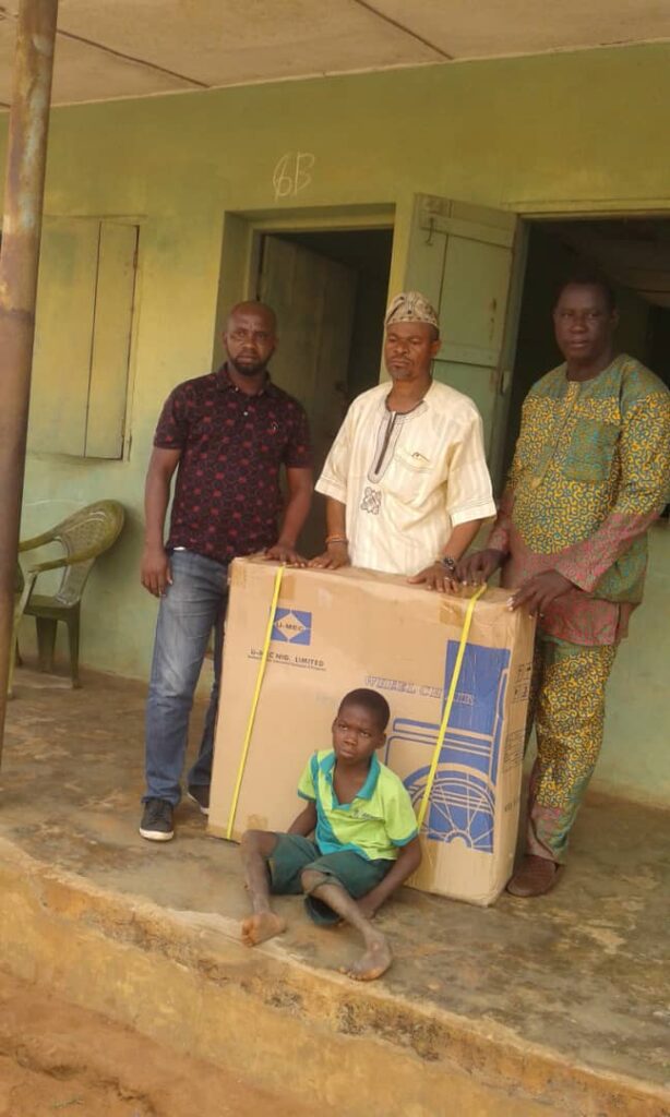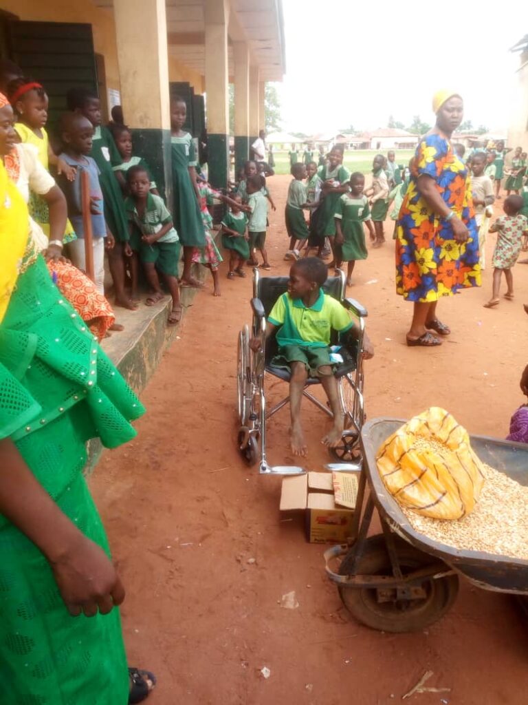 “The brand new wheel chair will allow him to move about freely among his peers and also relieve the parents the burden of carrying him to and from school everyday so that they can also do other economic viable things”, he said.