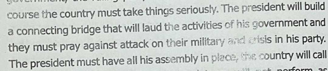 ‘’The president will build connecting bridges that will lay the activities of his government. He must pray against attacks on their military’’.