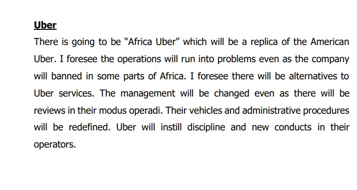 In the same vein, Primate Ayodele wrote on Ride hailing service, Uber (PG 170), making it known that the company will run into problems in its operations. Fulfilling his prophecies, there was a crisis for the ride hailing service yesterday when news broke out that the company lobbied politicians and broke laws in its operations.