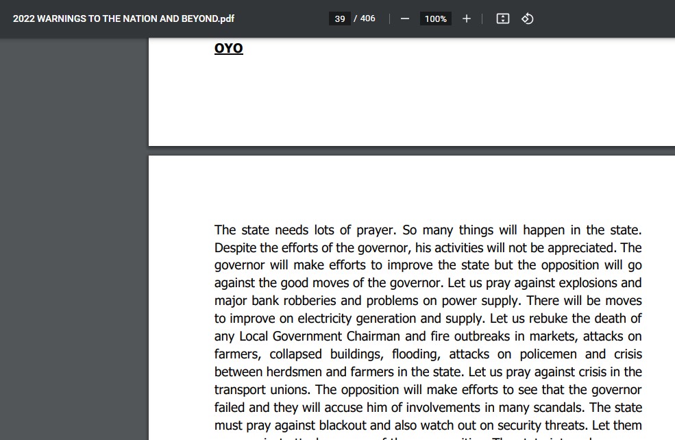 The man of God released the 2022/2023 edition of his annual prophecy book titled Warnings To The Nations on Saturday, 9th Of July 2022 and as usual, before the day ended, some prophecies have begun to come to pass, this is a sure sign that truly, Warnings To The Nation isn’t a product of human intelligence but divine signals.