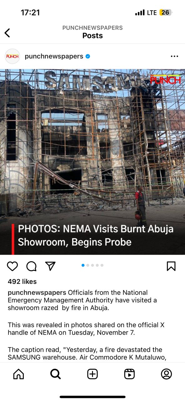 Also, it would be recalled that a showroom was razed by fire in Abuja. It was reported that fire devastated the SAMSUNG warehouse.