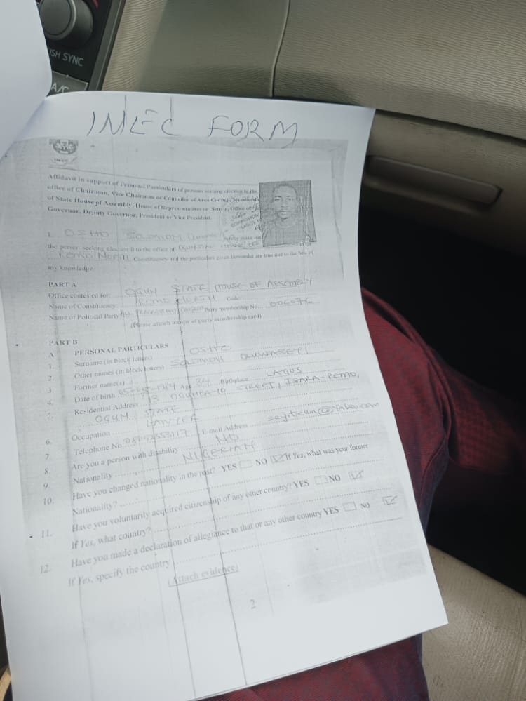 INEC obviously did not notice the inaccuracies in the documents and informations submitted by Hon. Solomon Osho in 2019 and again in his re-election bid, the lies has been sent to the electoral body in 2022.