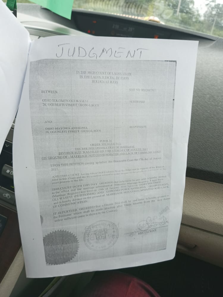 Furthermore, Hon. Osho forged a court judgment while trying to secure visa approval for one Folashade Janet Bajomo.