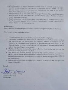 5. That the above Resolutions be copied to the Governor of Ogun State and the Ogun State House of Assembly.