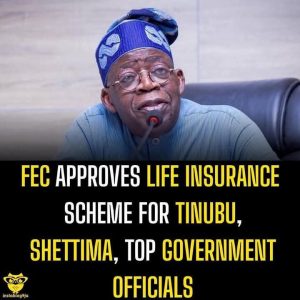 In a nation where hospitals are crumbling, medications are priced beyond the reach of the average citizen and thousands are dying in silence, the Federal Executive Council (FEC) has approved a life insurance scheme not for the vulnerable poor not for the overworked doctors or underpaid civil servants, but for President Bola Ahmed Tinubu, Vice President Kashim Shettima and top government officials who already enjoy the most luxurious Healthcare often abroad and at public expense(imagine oo). This move is not only insensitive; it is an insult to the Nigerian people(better insult).