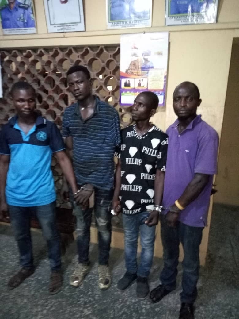 The suspects are Sunday Onilede, m, 35, Azan Razak, m, 35, Abdullahi Ibrahim, m, 29, and Fatai Taiwo, m, 40,