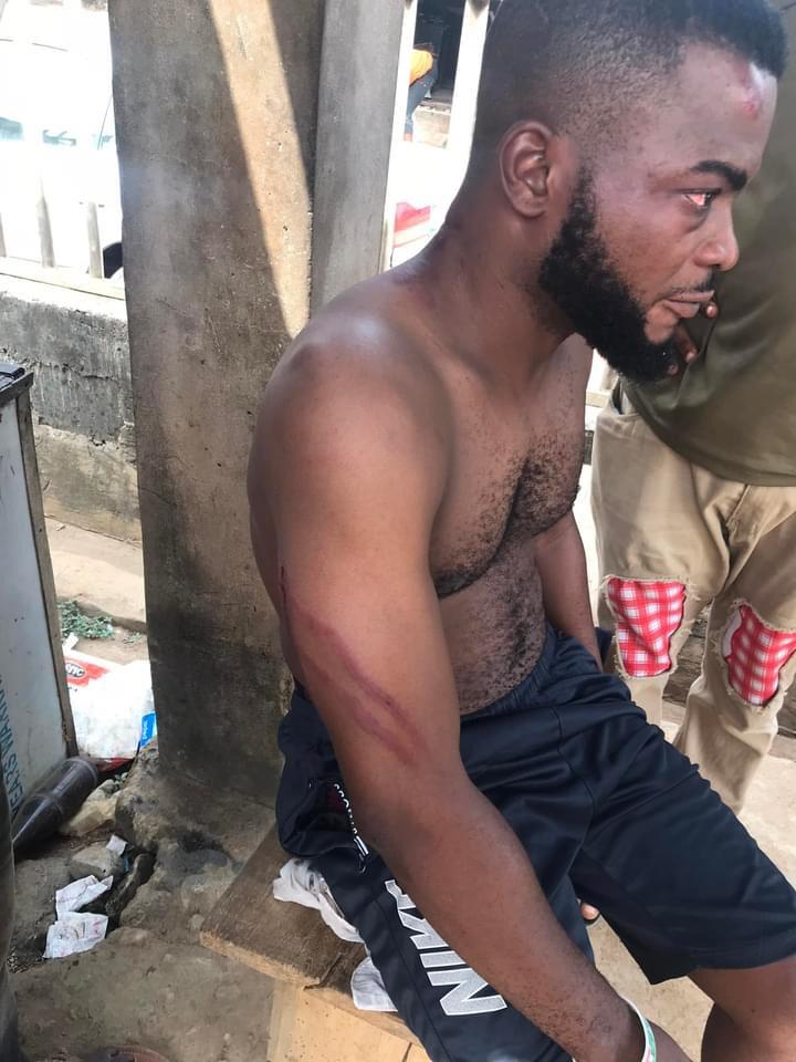 ” Even people around the busy area tried to stop them and requested to know what happened from the officers,four other officers rushed out from the station pounced on me using the butts of their guns and sticks to beat me, injuring me in the process”