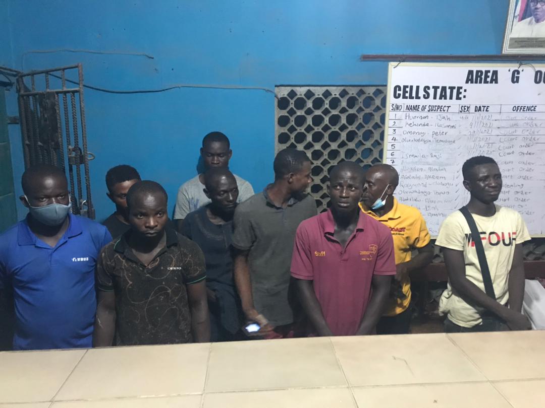 Those arrested included 26 years old Olajide Kolawole, 25 years old Kehinde Ayoola 20 years old Dola Abdullahi 19 years old Michael Ogungbade and 23 others.