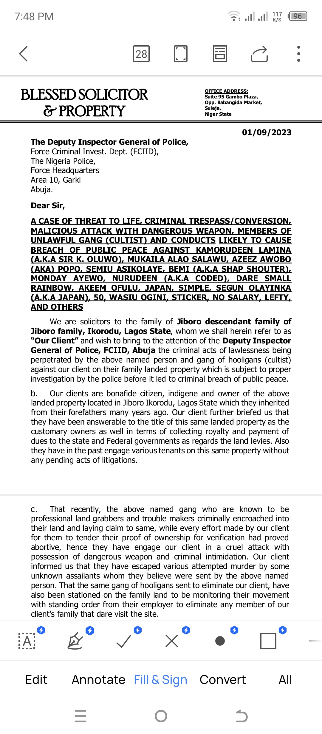LAND GRABBERS KAMORUDEEN LAMINA A.K.A SIR K OLUWO THREATENED TO KILL THE JIBORO FAMILY ONE BY ONE