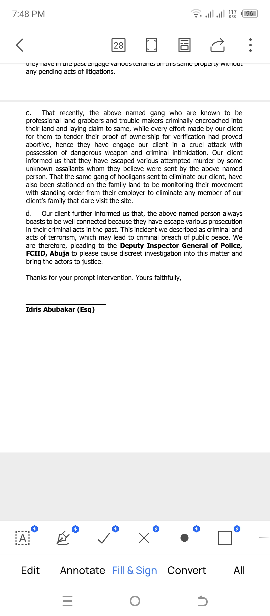 Tajudeen said that the people whom he described as hooligans and land grabbers has been laying claims to the land which he said belong to their grandfather and was passed down to their father and later to them.