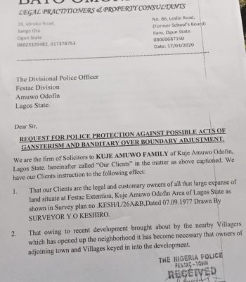 “Before the agreed date for the boundary resolution, we wrote a letter to the police at FESTAC division to give us policemen who would serve as witnesses.