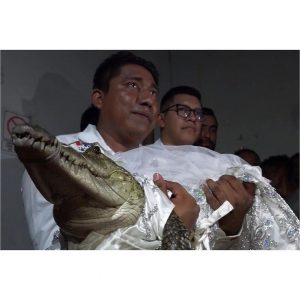CROCODILE– Victor Hugo Sosa, mayor of San Pedro Huamelula, a town of Indigenous Chontal people in the Tehuantepec isthmus of Mexico, took as his betrothed a reptile named Alicia Adriana, re-enacting an ancestral ritual.