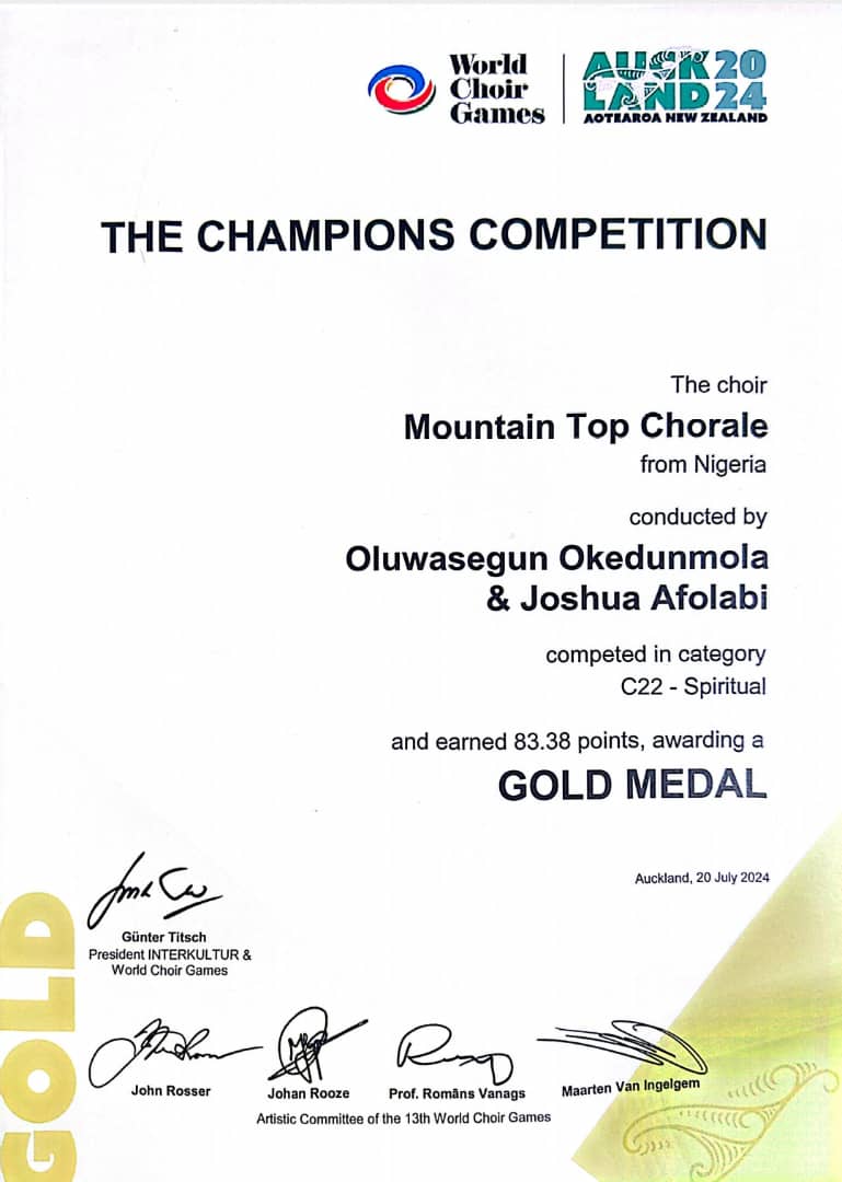 This is not unconnected to the fact that one of the Church’s choir groups – MFM Mountain Top Chorale, has won a gold medal at the 2024 World Choir Games in Auckland, New Zealand.