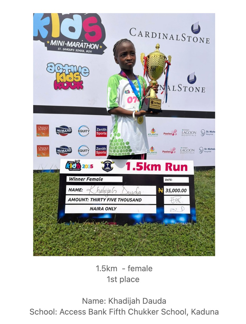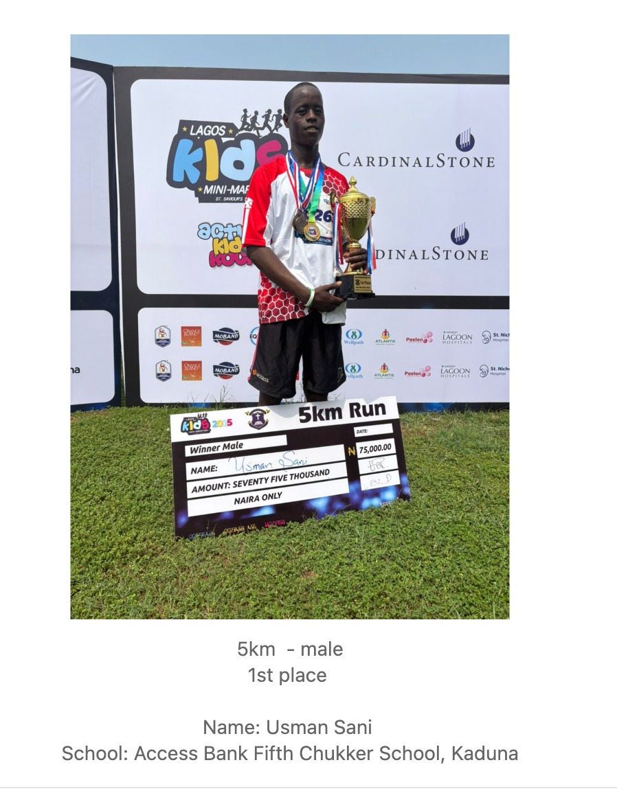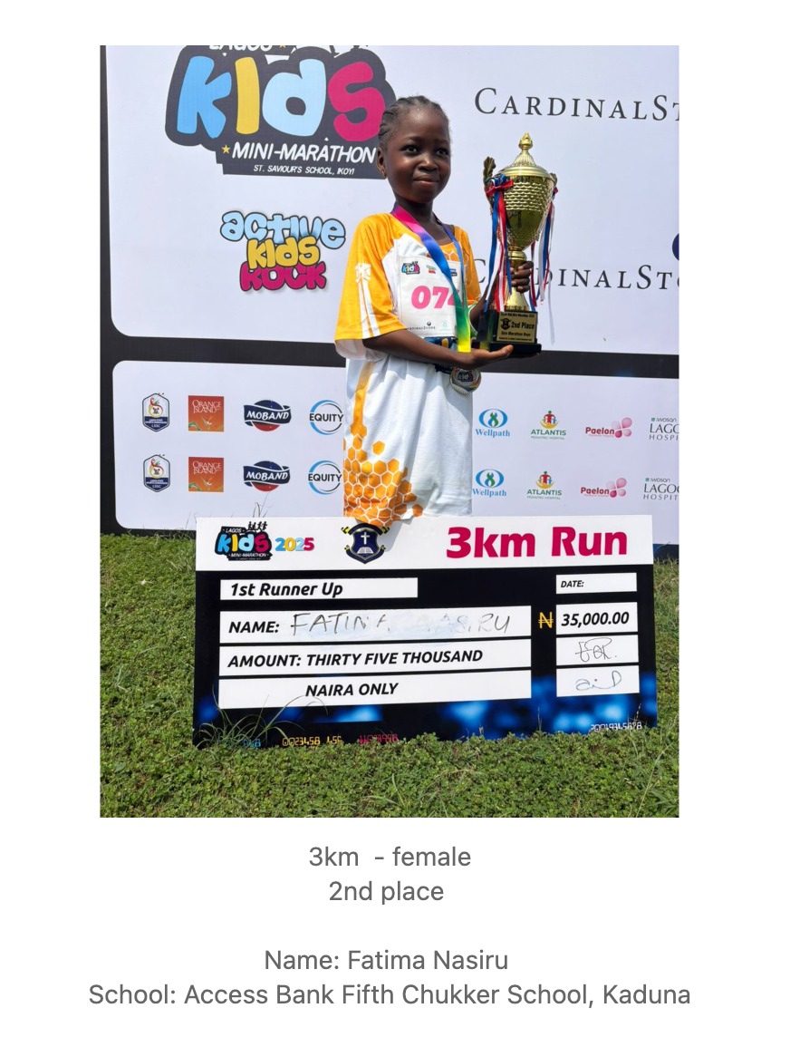 In a landmark moment for the mini-marathon, children with special needs participated for the first time. Pupils from Modupe Cole School joined the race, adding joy, vibrance, and inspiration to the event. Children from Access Bank Fifth Chukker School in Kaduna delivered an impressive performance, winning 8 out of 12 medals, while others also took home medals and trophies across different categories.