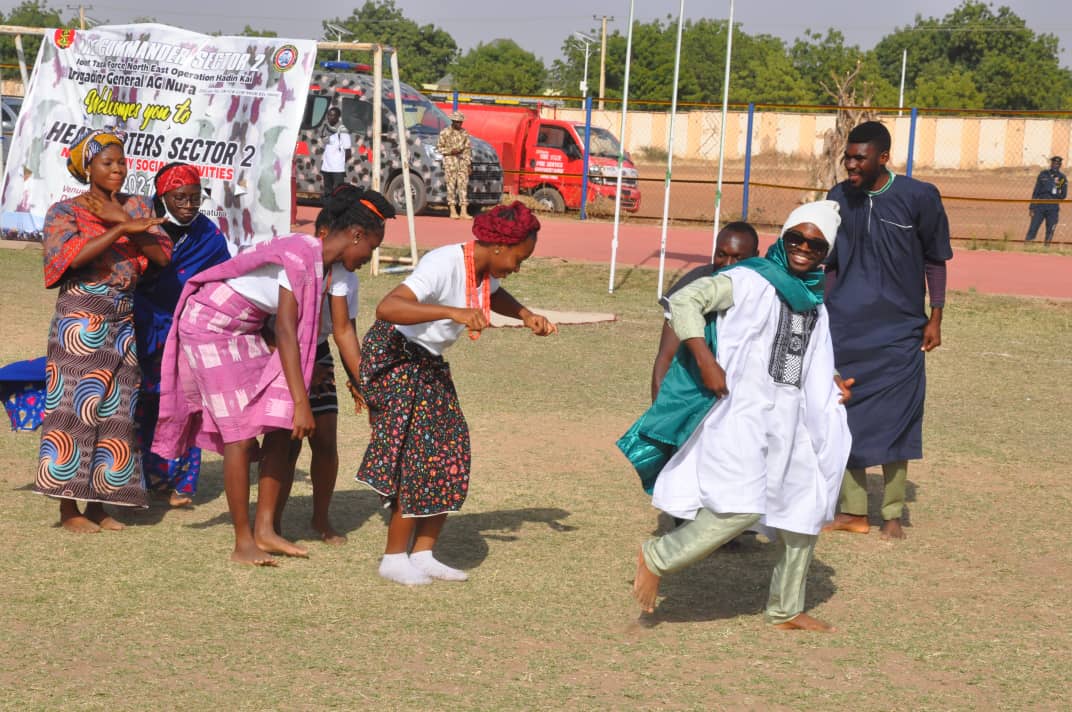 Earlier, the Commander Sector 2 Joint Task Force North East Operation HADIN KAI, Brigadier General Adamu Nura, while welcoming the Special Guest of Honour and other invited dignitaries to the Sector 2 Nigerian Army Social Activities disclosed that the event is conducted annually and it’s one of the ways of keeping the customs and tradition of the Nigerian Army alive. He stated that the event is meant to strengthen social relationships among officers, soldiers and their families as well as their friends through cultural displays, musical performances, comedies and other regimental activities.