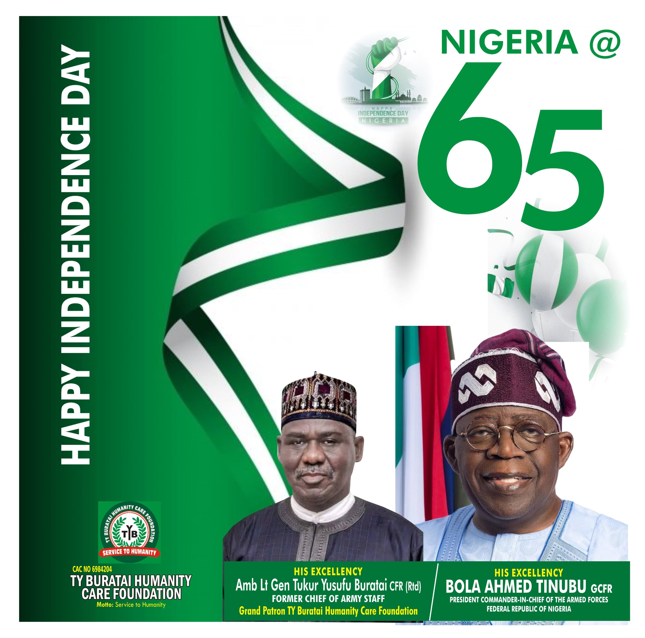 The TY Buratai Humanity Care Foundation has joined Nigerians in celebrating the country’s 65th Independence Anniversary, paying glowing tribute to President Bola Ahmed Tinubu and calling for renewed national unity, support for security agencies and remembrance of the nation’s heroes.